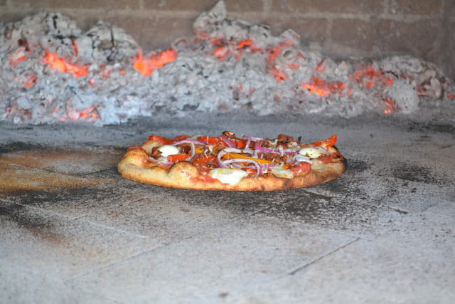 Dave had his brick oven stoked with fire in no time and we gathered ingredients for dinner. The kids requested sardines, so they could make their own pizzas.